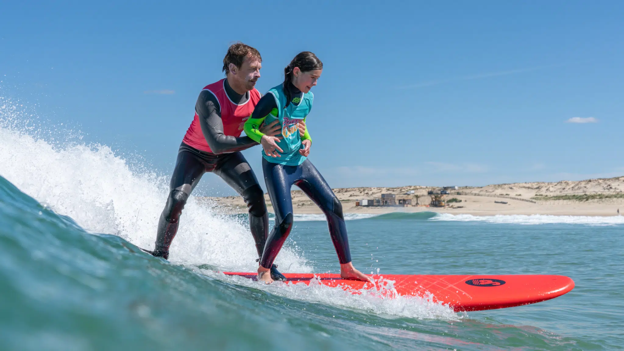 Bienvenue chez Buena Onda, ton école de surf à Biscarrosse Plage ! Que tu sois débutant, en famille, ou surfeur en quête de perfectionnement, nos cours et stages de surf sont faits pour toi. 1h30 de surf, avec un moniteur diplômé toujours à tes côtés, sur les meilleurs spots de la région. Navette gratuite depuis Biscarrosse Bourg et les campings partenaires : on vient te chercher pour aller surfer ensemble. Envie de progresser, t’éclater et te sentir bien dans les vagues ?